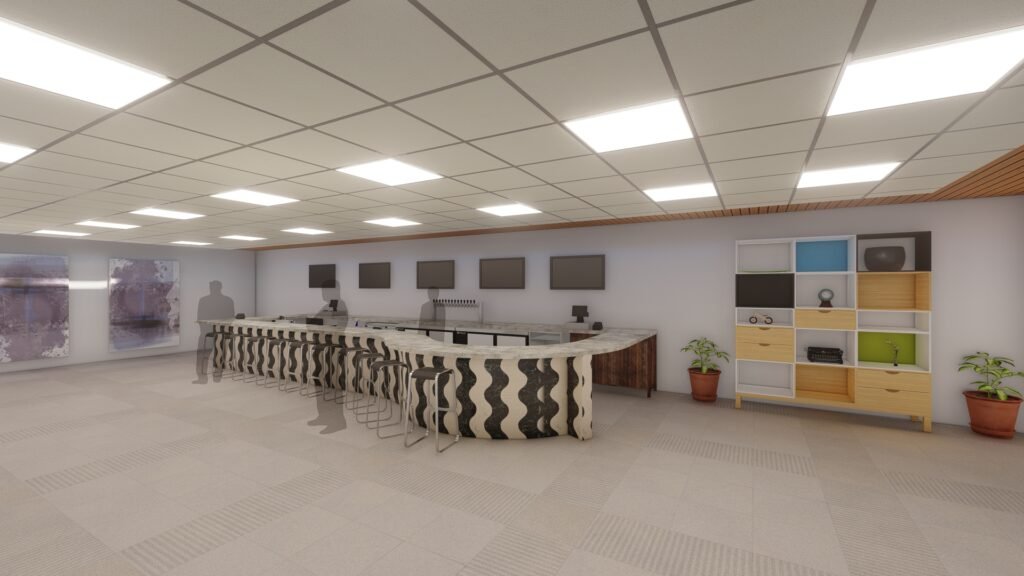 The Brewery Bar is organized into functional zones that cater to both operational needs and customer engagement. This bar design creates an immersive experience where patrons can witness the brewing process, enjoy crafted beverages, and relax in a convivial setting. The surface of the bar provides both durability and aesthetic appeal. The back bar area features, counter shelving, refrigeration for beer taps, spirit bottles, and glassware, allowing bartenders easy access to tools and ingredients. The bar layout emphasizes the integration of a socialistic bar which fosters a sense of connection to the brewing process.