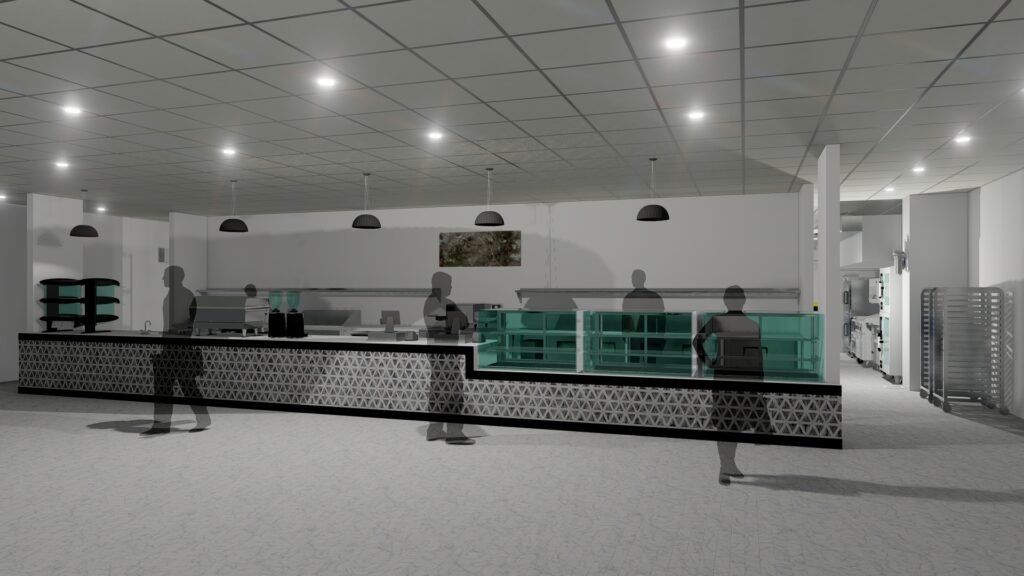 The design of the corporate kitchen, servery, and grab-and-go area is centered on providing a streamlined, efficient, and aesthetically aligned to the commitment of promoting a healthy and dynamic food culture within the workplace. In addition, a dining experience that encourages social interaction, productivity, and wellness for the staff.